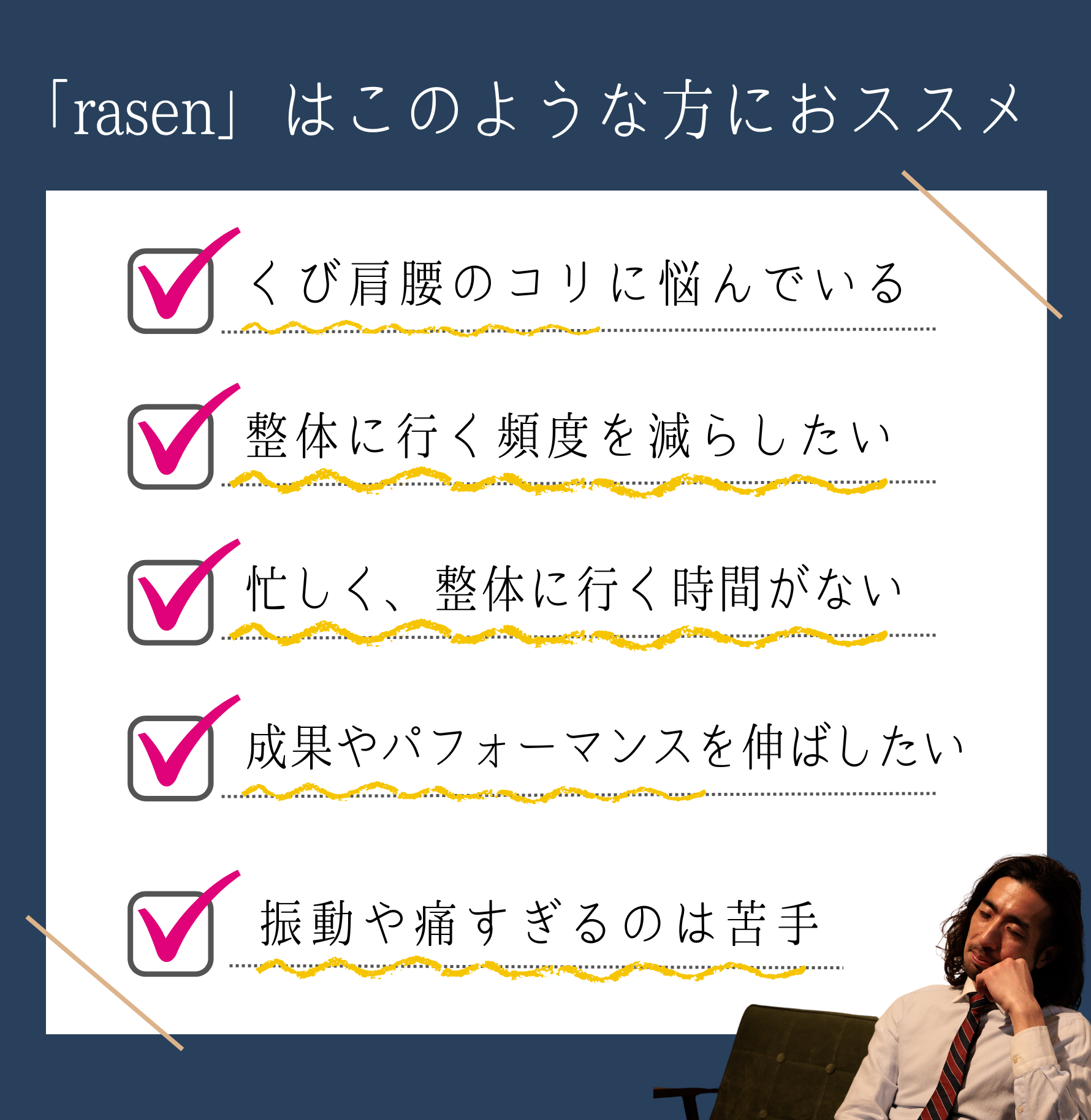 ・妊娠中またその可能性のある方 ・使用する部位に外科的疾患、既往歴がある場合 ・お身体の状態に不安がある方 ・強い痛みのある方 ・骨密度が低下している方 ・内出血しやすい方 ・情緒不安定または精神的不調を強く感じる方